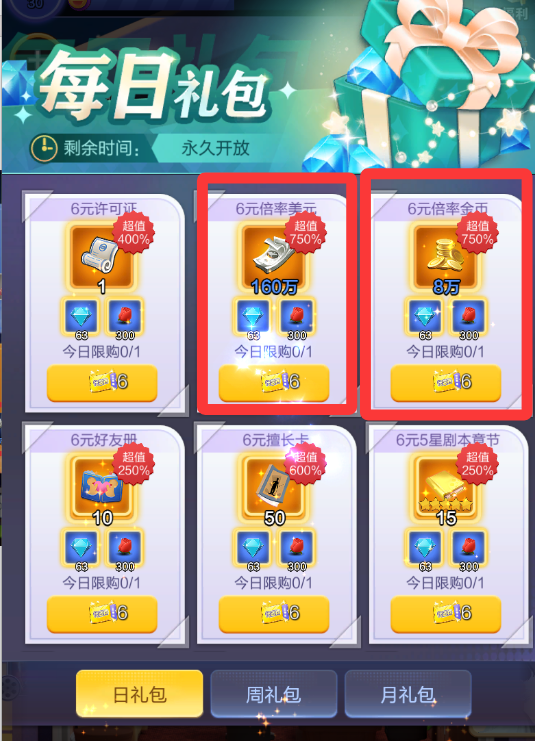 6:特惠礼包每日购买(这个基本只有前期发育冲榜的时候有需求,如果有冲榜需求可以氪)