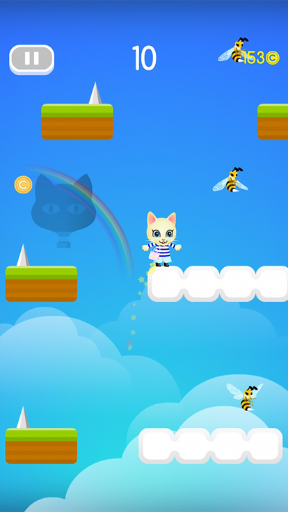 在天空飞翔,收集硬币和打扮的猫!你能走多远?分享你的分数和今天的装备上 [详情]