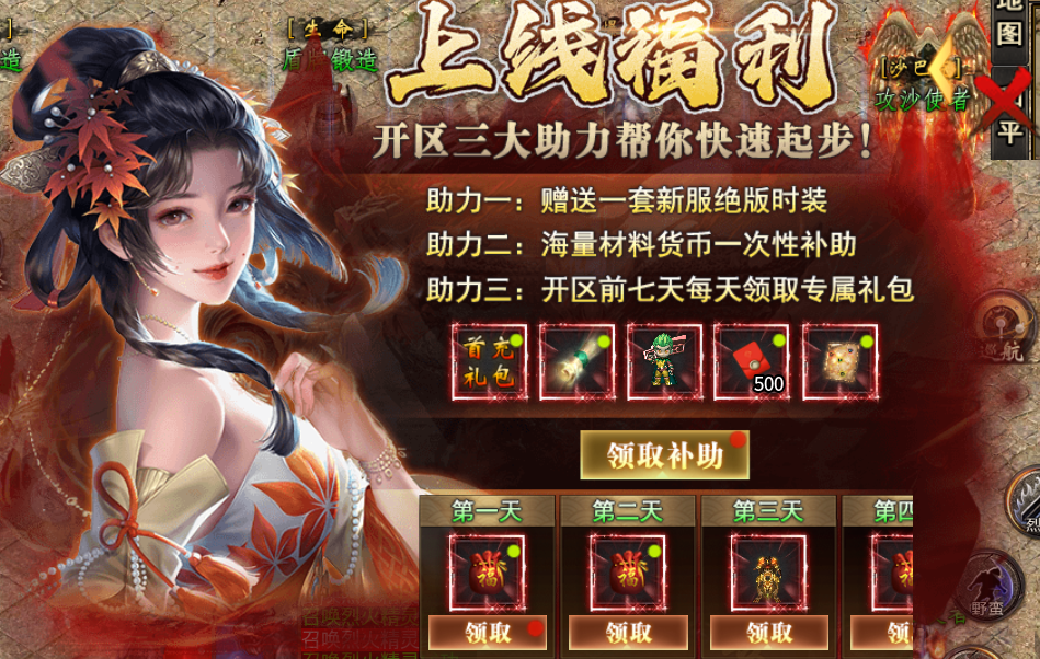 2.上线福利赠送首冲礼包、绝版时装、绝版称号、真充红包各种福利免费领取,开区三大助力帮你快速起步!