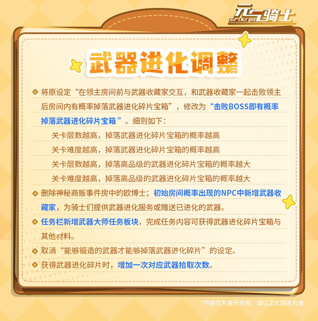 还有还有武器进化系统也迎来一波更新调整,一起下滑查看吧!