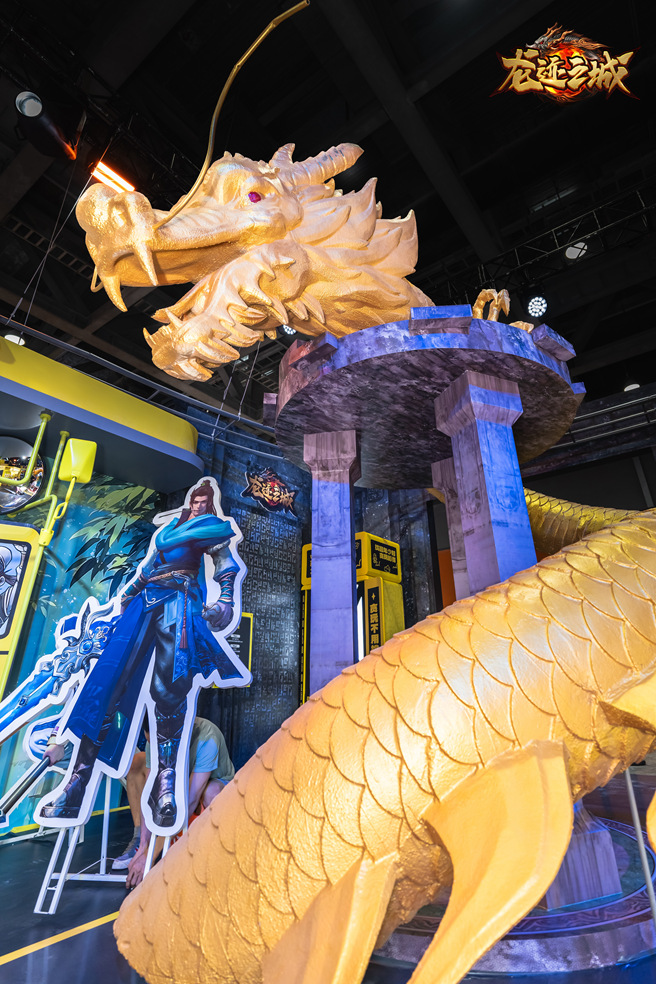 踏进展馆,龙迹之城展台C位那座金光璀璨、气势磅礴的巨型金龙傲然矗立!它不仅是全场最瞩目的焦点,更是勇士们争相打卡的“圣地”。无数兄弟在此驻足、合影,感受着扑面而来的传奇世界恢弘气息,仿佛下一秒,巨龙就将腾空而起,引领我们重返梦中的玛法战场!