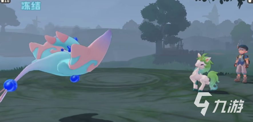 核心思路是圣代甜甜配合冰钻布鲁斯,利用圣代甜甜的特性,在冻结目标时额外叠加两层,从而实现一回合三层以上的冻结。搭配霜天,更是冻结同时提升对方能耗。圣代甜甜的速度优势让它可以先手换下布鲁斯触发霜冻特性,使对手被强制冻结无法替换。这时候布鲁斯就能安心进行龙之舞强化,靠贪婪吸血维持血量,最后一波无解推队。