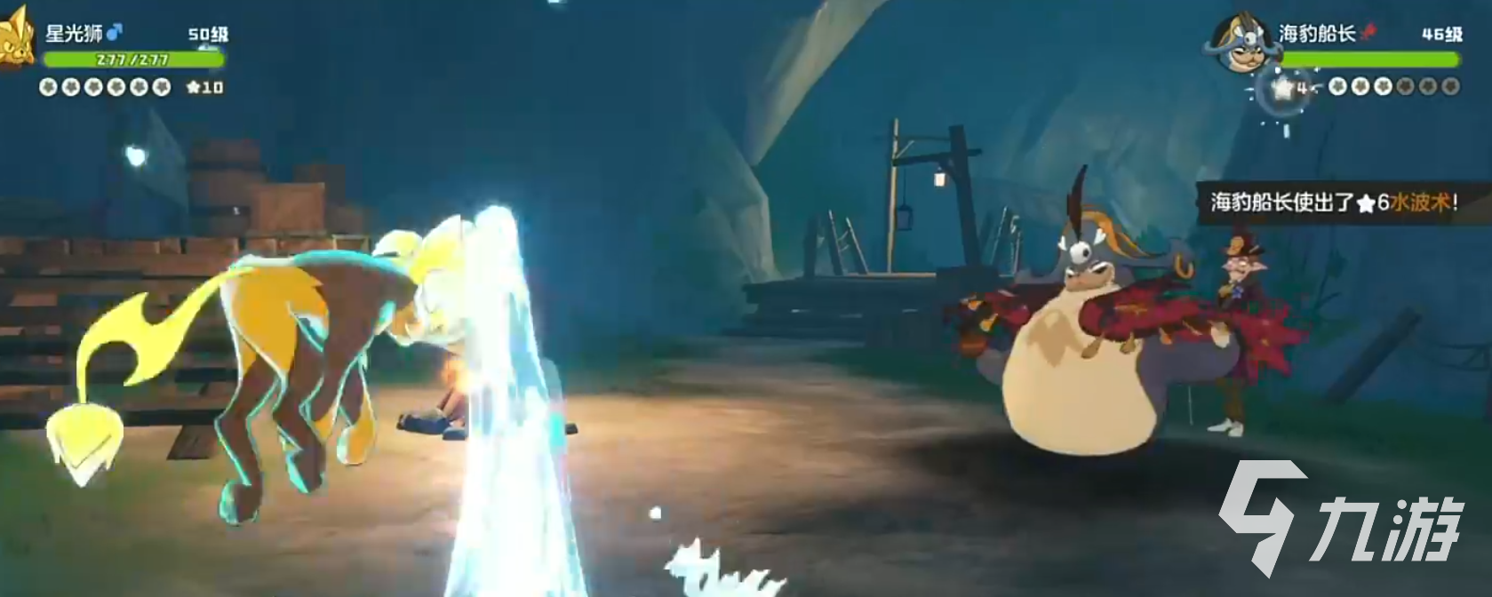 他的第1只是水系的海豹船长,由于是水系的关系并且本局有克制伤害双倍的加成,所以建议大家去选择电系的星光狮,让星光狮携带好离子火花进行使用就能凭借克制关系直接将其给击败,他的第2只草系加地系的多菇丁。