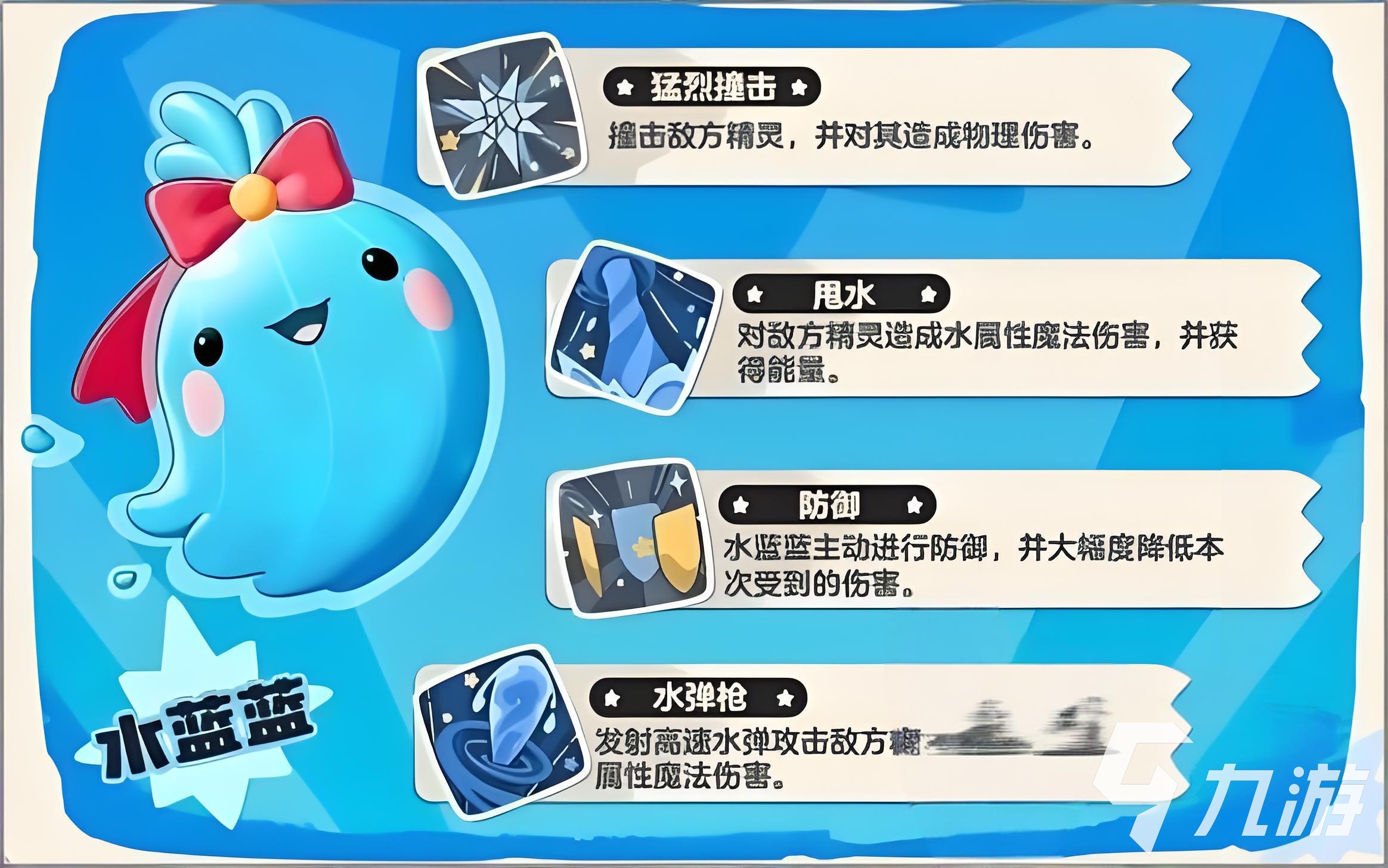 水系的初始形态是小水滴到最后的终极形态蓝漪水灵,他的防御体系和续航能力特别的强,特别配备水系被动在雨天或水域环境当中能够将能耗降低。对于一些高双防和控制技能能够成为团队坦克,尤其在水系队伍当中,可以通过雨天队战术实现能耗逆转。并且冰冻控制可以打断敌方的连招,为队友创造一些输出的窗口。