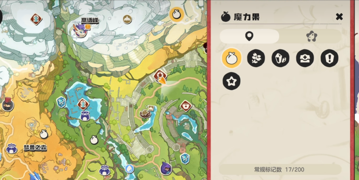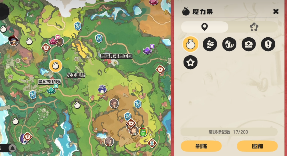 对于魔力果的采集,大家一定要做好路线的合理规划,优先选择既定的点,比如商店附近或灵峰塔的,可选择循环采集的方式进行采集,采集需要精灵去获得,因此建议大家携带更多的大型精灵进行采集。
