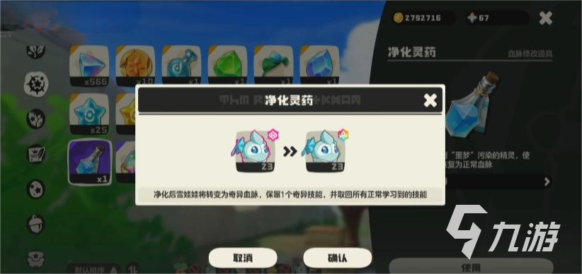 净化需要净化药水,该药水是通过玩家的炼金术获取的,需要的材料就是愿力灵碎5个,该道具依靠玩家放生噩梦精灵获取,大家捕获的不需要的精灵可以放生,以此来获取这个道具,在炼金大锅内可以制作,没有制作的数量限制,对精灵使用之后立即获得效果。
