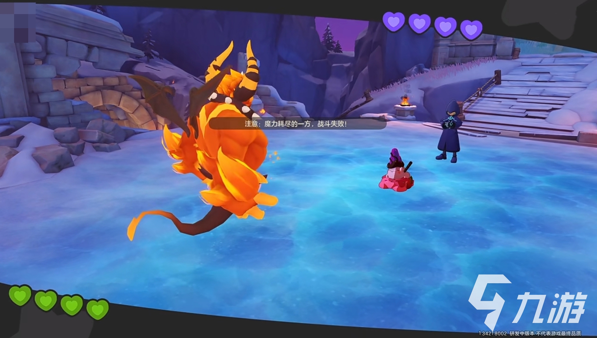下面就可以把魔力源激活挑战黑衣人了。这个黑衣人的精灵都是40级的,有四个魔力值,能力是敌人赋予冻结时额外附加一层,对局条件是魔力耗尽的一方战斗失败!黑衣人的第一位精灵是冰系的圣代甜甜,第二位精灵是冰火双系的九尾狐,第三位精灵是冰系的冰封怨灵,这个有点恶心,它的能力是一上场就会让我们的精灵能耗+1,第四位精灵是萌系与冰系的帽兜娃娃。黑衣人的四个精灵都是冰系的,打起来不难,火系克制冰系,用伤害稍微高一点的火系精灵就能轻松获得胜利,比如火神,战斗胜利就通关完成啦!