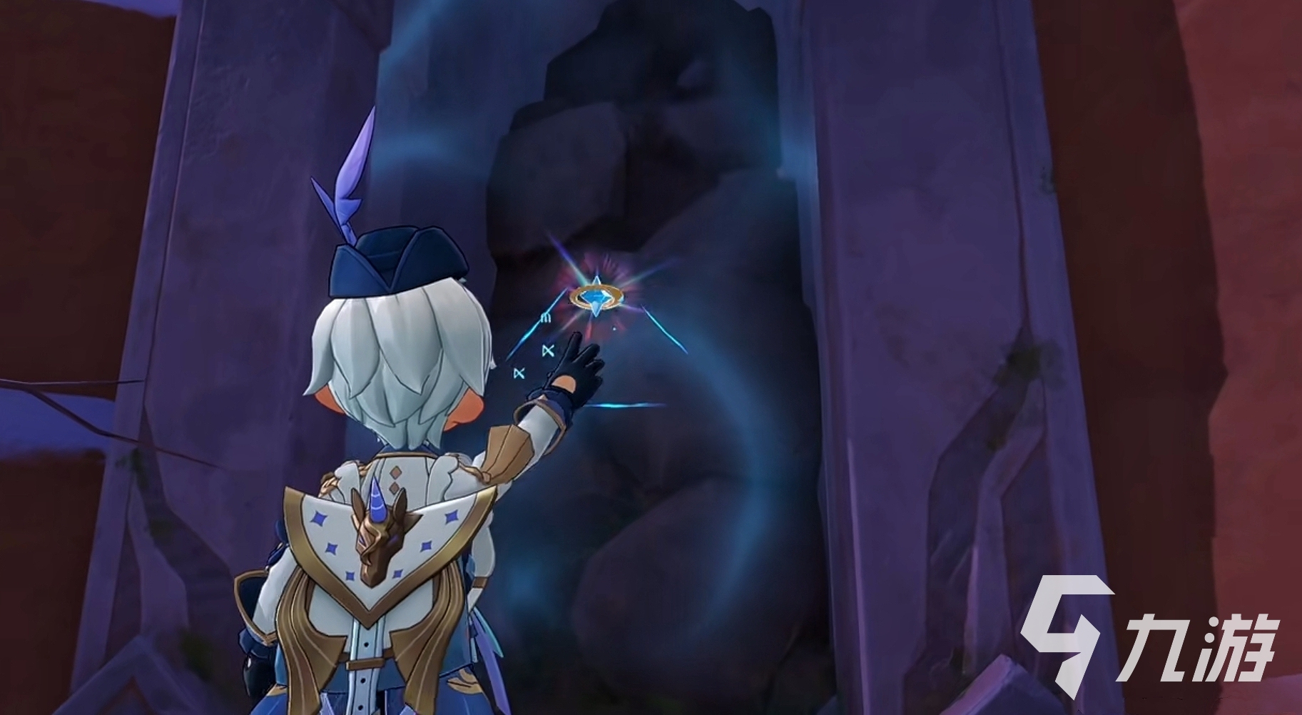 雪灵守护地在卡洛西亚大陆的雪山上,激活了秘境就可以直接传送过去。接着进入秘境,一进来就能看到前方站着一位黑衣人,不过先不管他,咱们把隐藏奖励拿了再说。右侧有一个黑色牢笼,飞过去,然后点击查看牢笼外面的碑文,根据提示得知,需要一把钥匙来打开牢笼,且钥匙在甜水镇的秘境里面。甜水镇位于洛克里安地界,其中的秘境叫做镜中世界,就在寒霜村附近。激活后传送过来,进入秘境,钥匙就在这个冰面下方,打败面前的NPC即可解锁,或者猜对三位精灵,这样不用战斗也能解锁了。钥匙就在冰面下方的宝箱里,拿到钥匙后我们直接传送回雪灵秘境,放入钥匙即可打开牢笼。