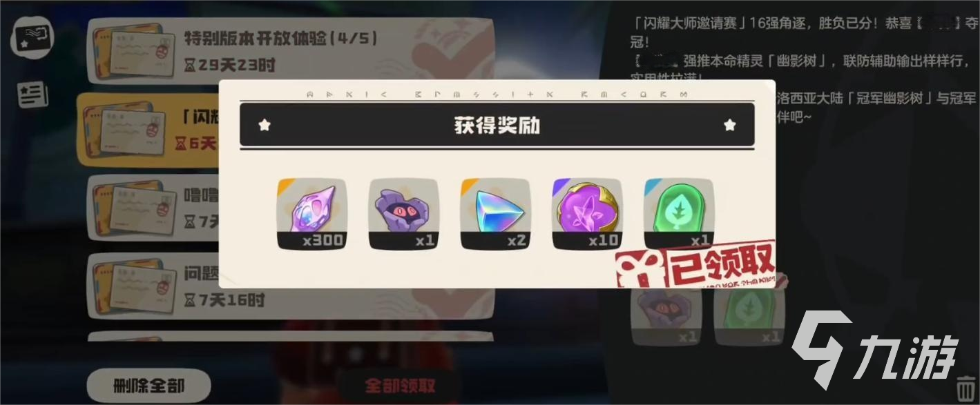 获取方法很简单,冠军树是对战的官方奖励精灵,需要各位玩家输入兑换码获取,在设置的界面的当中打开窗口,找到图示的信封界面,输入口令“你好冠军树”就能领取奖励,本次的获取的是幽影树,和一般大世界的幽影树的外貌上面没有任何的差别。