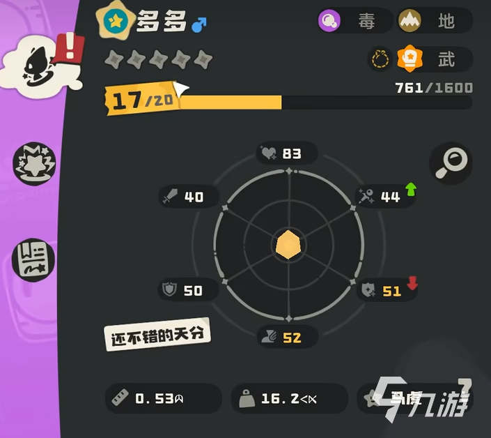多多这个精灵的特性是毒牙。这个特性是在对敌人造成中毒之后将会额外的降低敌人的魔攻魔防。这个特性在对付一些魔法系精灵的时候是非常好用的。而且此特性的触发对于多多来说还是比较容易的。