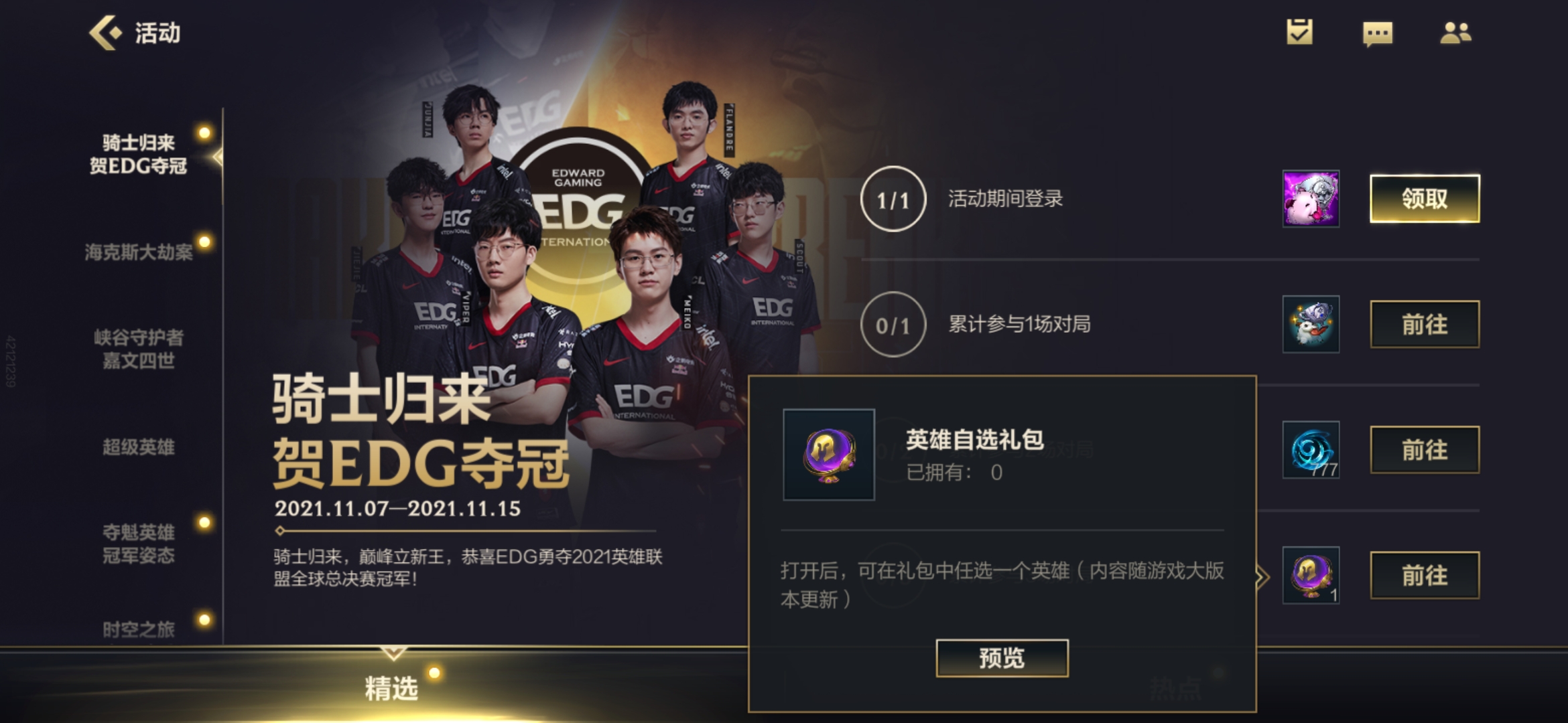 EDG战队夺冠了,小伙伴都非常高兴,那么今天小编就来带来英雄联盟手游骑士归来活动怎么玩的介绍,这里小编会为小伙伴带来这个活动的详细时间以及小伙伴需要完成的任务,...[详情]