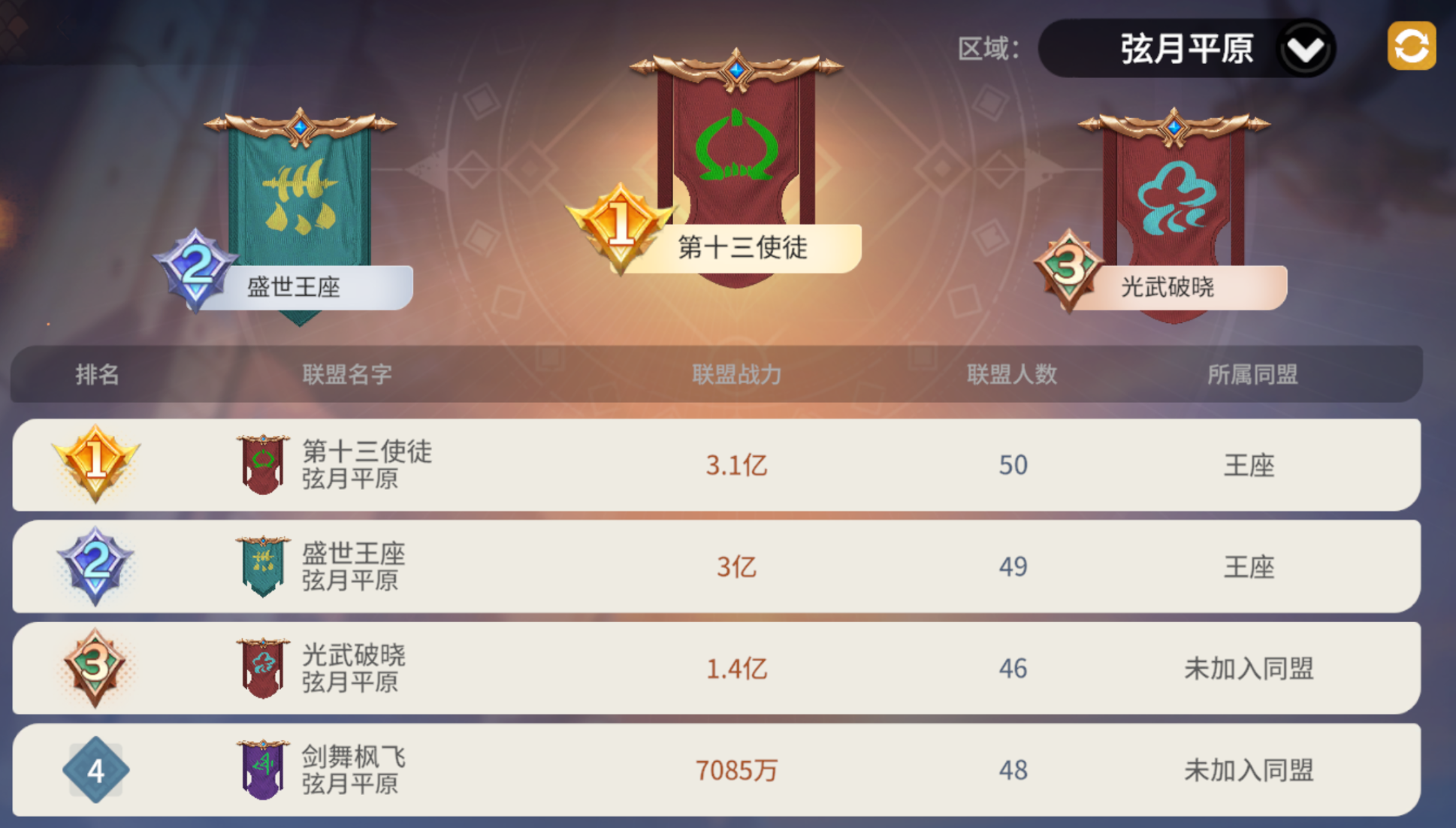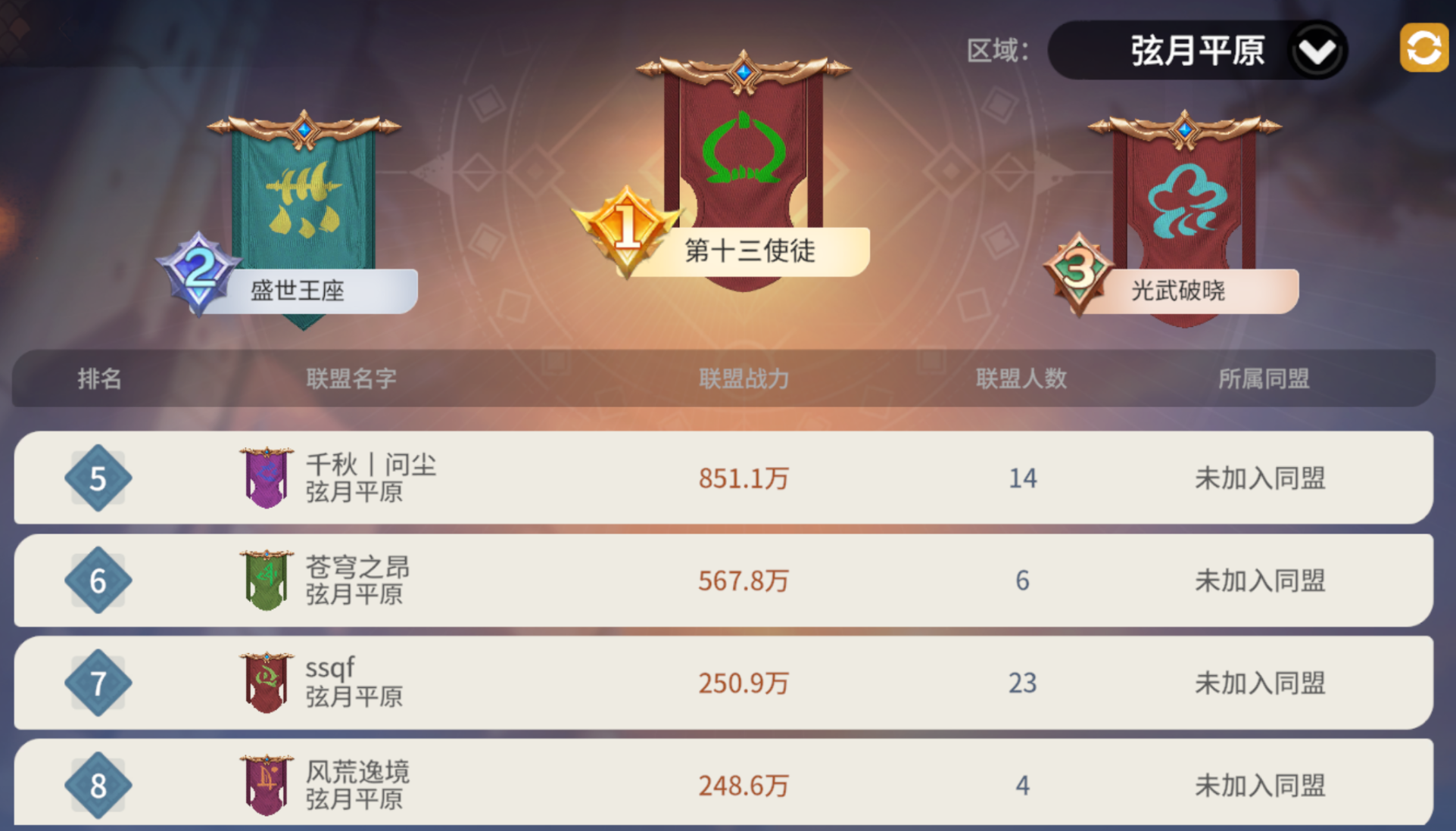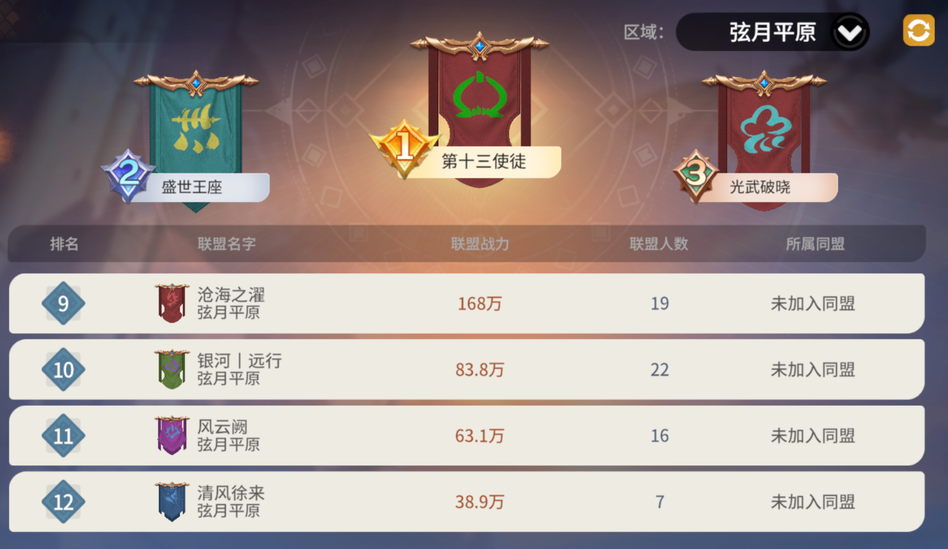 而截至今日12:00,弦月平原共有12个联盟。