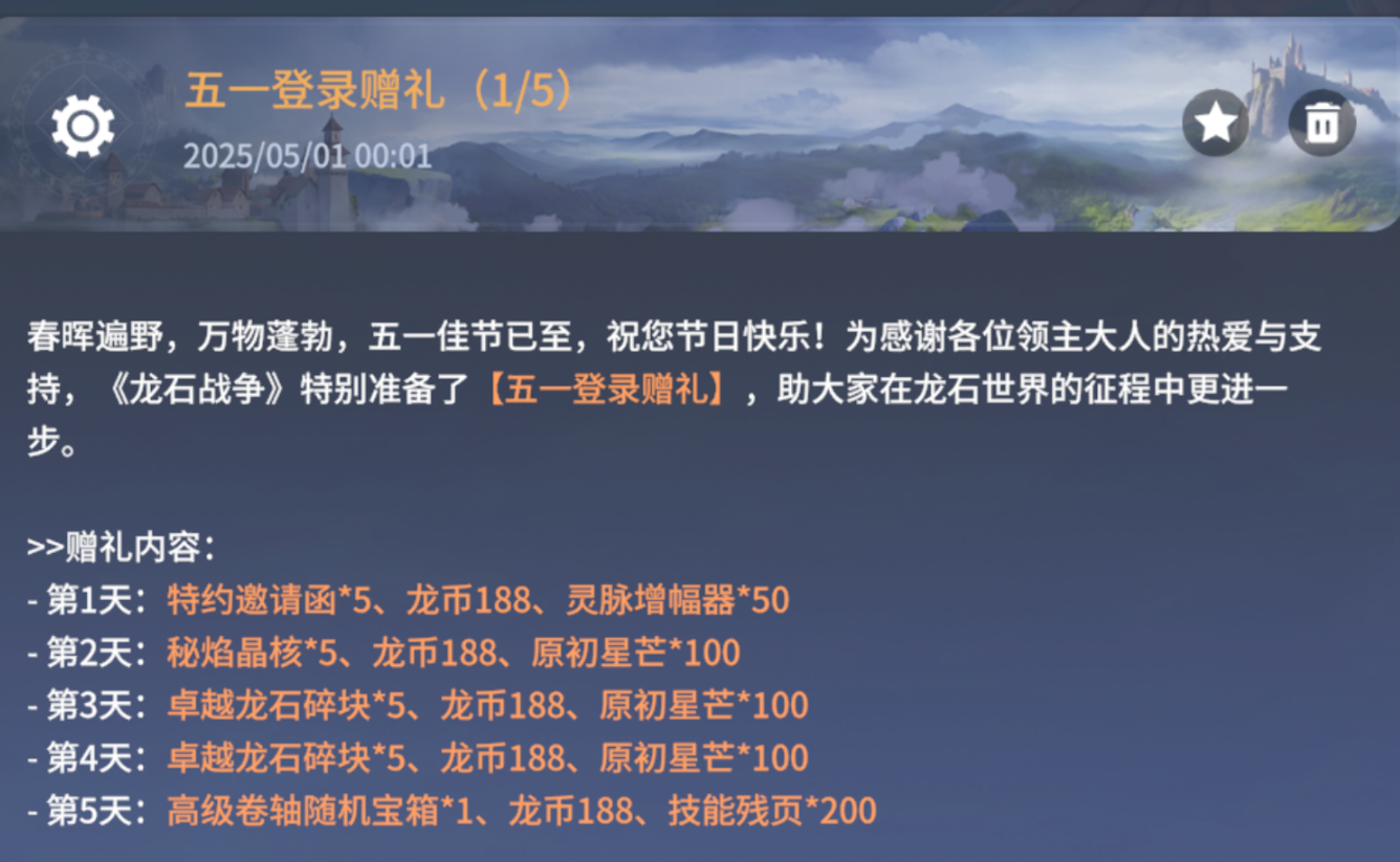 领主大人们节日快乐呀,幻龙宝宝温馨提醒:别忘了上游戏领取丰厚的五一登录礼喔~