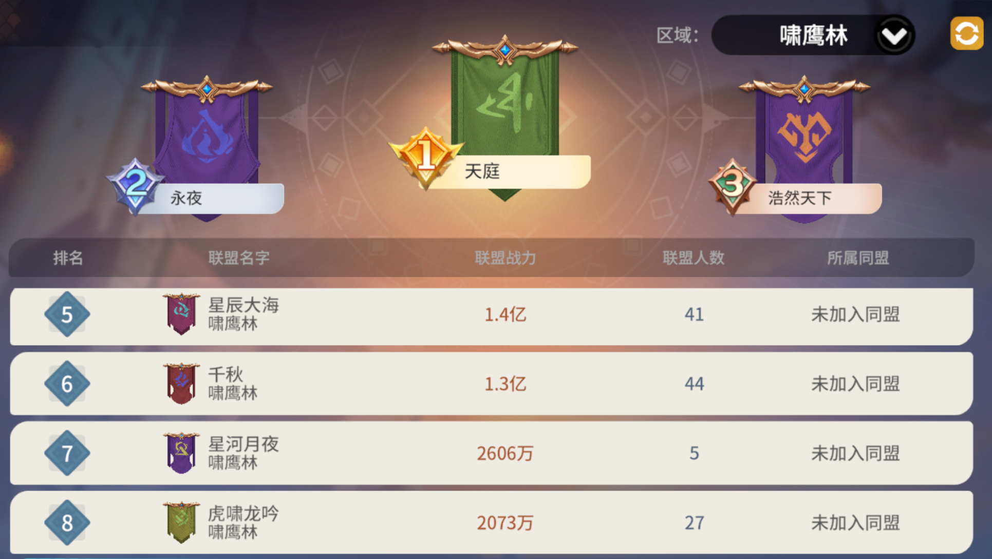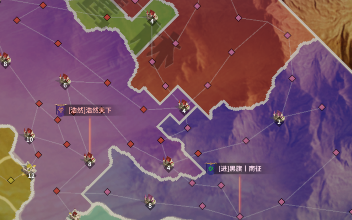 不曾想上赛季还能进决胜州的【星辰大海】落地在两方势力中央。这下神仙打架凡人遭殃,直接被【天庭】所在同盟【夜然天】赶至地图东北角;而【千秋】与盟友【黑旗丨南征】力有不逮,亦是被【夜然天】压制,啸鹰林三座关隘即将落入【夜然天】之手。
