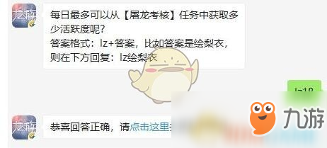 《龙族幻想》每日最多可以从屠龙考核任务中获取多少活跃度呢 10月16日每日一题答案