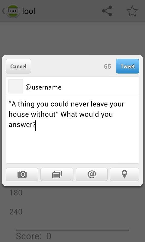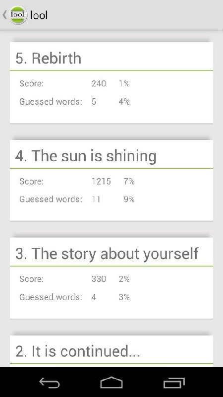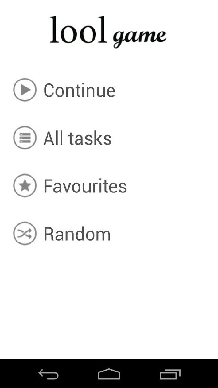 Guess the words - forget about the reality! This is the lool game! The main goal of the lool game is to guess the words. And that's not so simple as seems at first glance.The lool game is based on something like opinion polls. So people create the content of this game themselves! Isn't it amazing!? Moreover, everyone can submit his own question and can see it in the next version of the lool game!The lool game is simple and very addictive. You'll like to solve different tasks! You can boast your records using Twitter or share the questions and your thoughts with your friends.The lool game has a great statistic screen that shows your progress.This game is adopted for playing in landscape mode.You can find more information on the website of the lool game.
