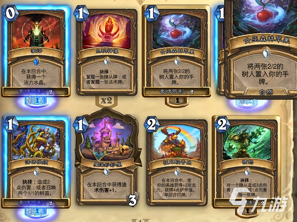 初始游戏里面所赠送我们的德鲁伊的卡组可以让我们组合成铺场的BUFF流派。这个流派总的来说并不算很弱,它可以让我们对德鲁伊的流派有着更进一步的认知,同时在初期的冲分也会有着不少的先天优势,玩家们可以使用这套来熟悉和冲分。