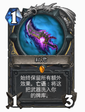 在炉石传说游戏里,武器的强度都非常高,其中不乏一些传说级武器,今天就给大家带来炉石传说传说级武器推荐。 弑君 作为一把传说级武器,弑君的强度想必都是有目...[详情]
