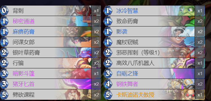 随着炉石传说贫瘠之地的数次版本变动,刀贼逐渐从下水道走向t1队列,那么炉石传说贫瘠之地猪匕贼怎么玩呢,接下来为大家带来相关攻略。 一、卡组构成及打法 这...[详情]