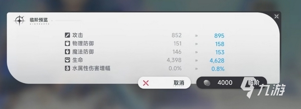 在星赐面板中,可以看到当前的临阶度提升所需要的3~5项赐予目标,直白点说就是需要收集相应的道具素材上交,然后来提升角色的技能等级。全部的目标赐予完毕就可以点击右下角出现的“临阶”选项,点击就能升阶,提升属性。