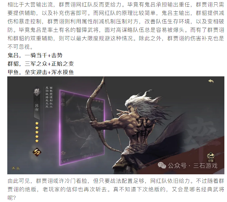 【攻略分享】群贾诩即将绝版,老玩家青春逝去,群甲鱼网红队依旧强