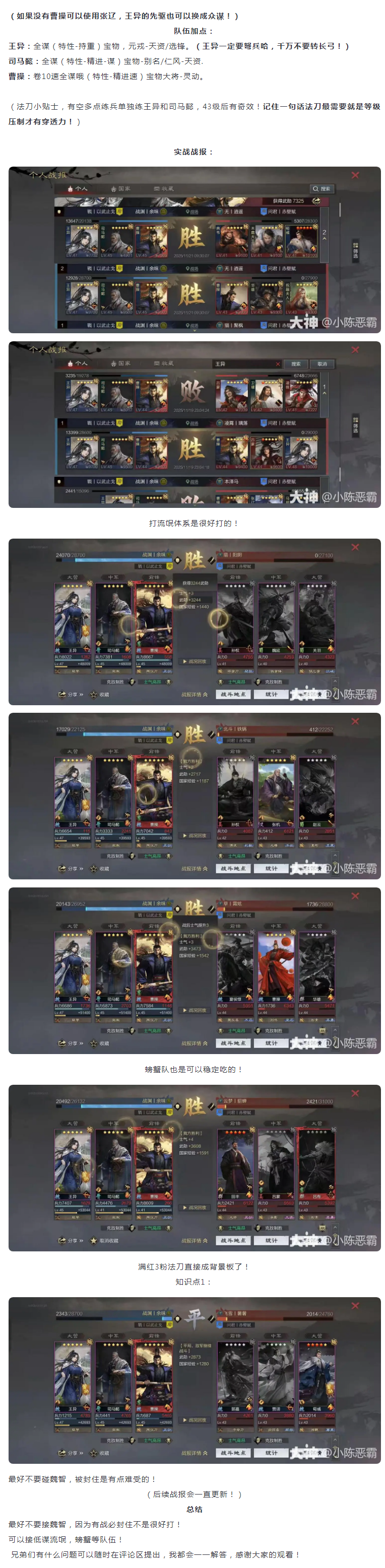 - 【攻略分享】王异法刀进阶版“王异,司马懿,曹操!”