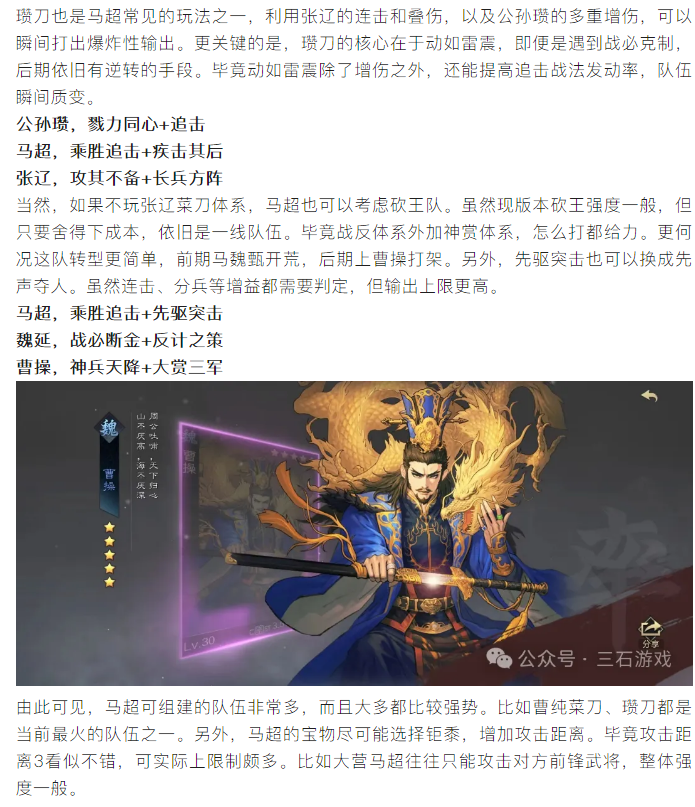 【攻略分享】最强马超怎么玩?菜刀成首选队伍,马超队伍大集合