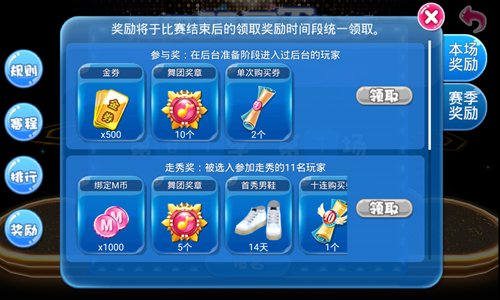 T台秀赛季奖励领取条件修改为:至少同一舞团参与过3次T台秀活动