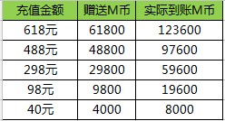 活动期间,充值固定金额即可获得双倍M币奖励!