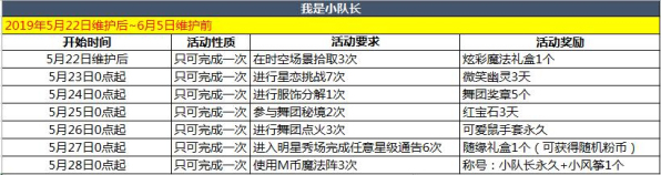 活动时间:2019年5月22日维护后~2019年5月29日维护前