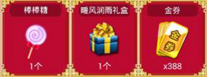 奖励为【暖风润雨初夏礼盒】【棒棒糖】【大量金券】
