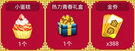 奖励为【热力青春礼盒】【小蛋糕】【大量金券】