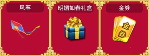 奖励为【明媚如春礼盒】【风筝】【大量金券】