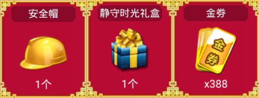 奖励为【静守时光礼盒】【安全帽】【大量金券】