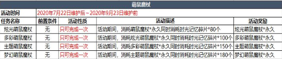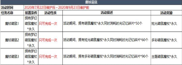 ③通过萌鼠魔杖系列活动,可消耗时光记忆碎片,将萌鼠魔杖升级为炫光萌鼠魔杖、多彩萌鼠魔杖、主题萌鼠魔杖、梦幻萌鼠魔杖