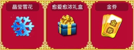 奖励为【愈爱愈浓礼盒】【晶莹雪花】【大量金券】