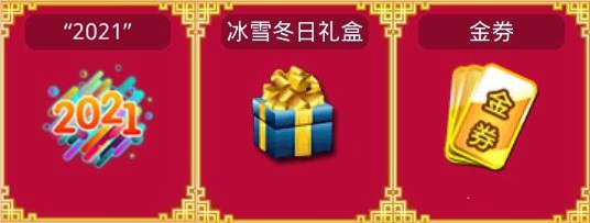 奖励为【冰雪冬日礼盒】【2021】【大量金券】