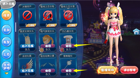 把不长穿的衣服统统放入仓库吧!要是临时反悔了,也是可以的哦!点击撤销即可。