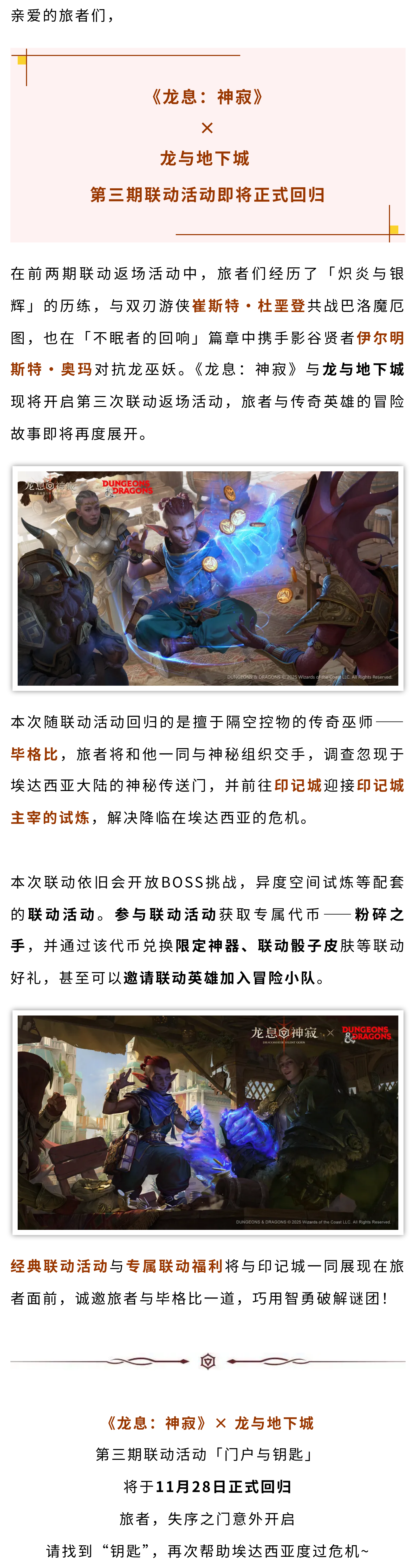 龙息神寂×龙与地下城第三期联动返场即将开启