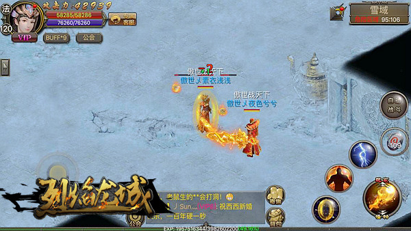 《烈焰龙城》是一款传承经典76的全民攻城PK手游,以极致唯美的游戏画面、真实的打击感、超越端游的流畅操作等特色,实现了手机上百人同屏攻城的盛况;全地图自由PK随时约架,全开放自由交易无绑掉落,从激战BOSS、夺宝奇兵、六道轮回到化身战神征战皇城,重重挑战,《烈焰龙城》为你还原最真实的畅快PK体验!