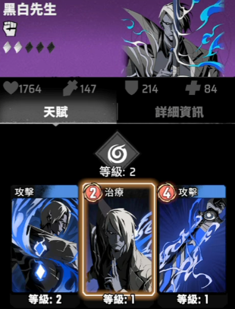 第二套阵容则是dot队,其核心角色是黑白先生。这个队伍本身是根据DEBUFF来增加伤害。黑白先生的终结技是一个对单高伤害的大招,并且大招本身还会根据DEBUFF数量提高自身的伤害。他自身的被动就是一个普攻的DEBUFF。