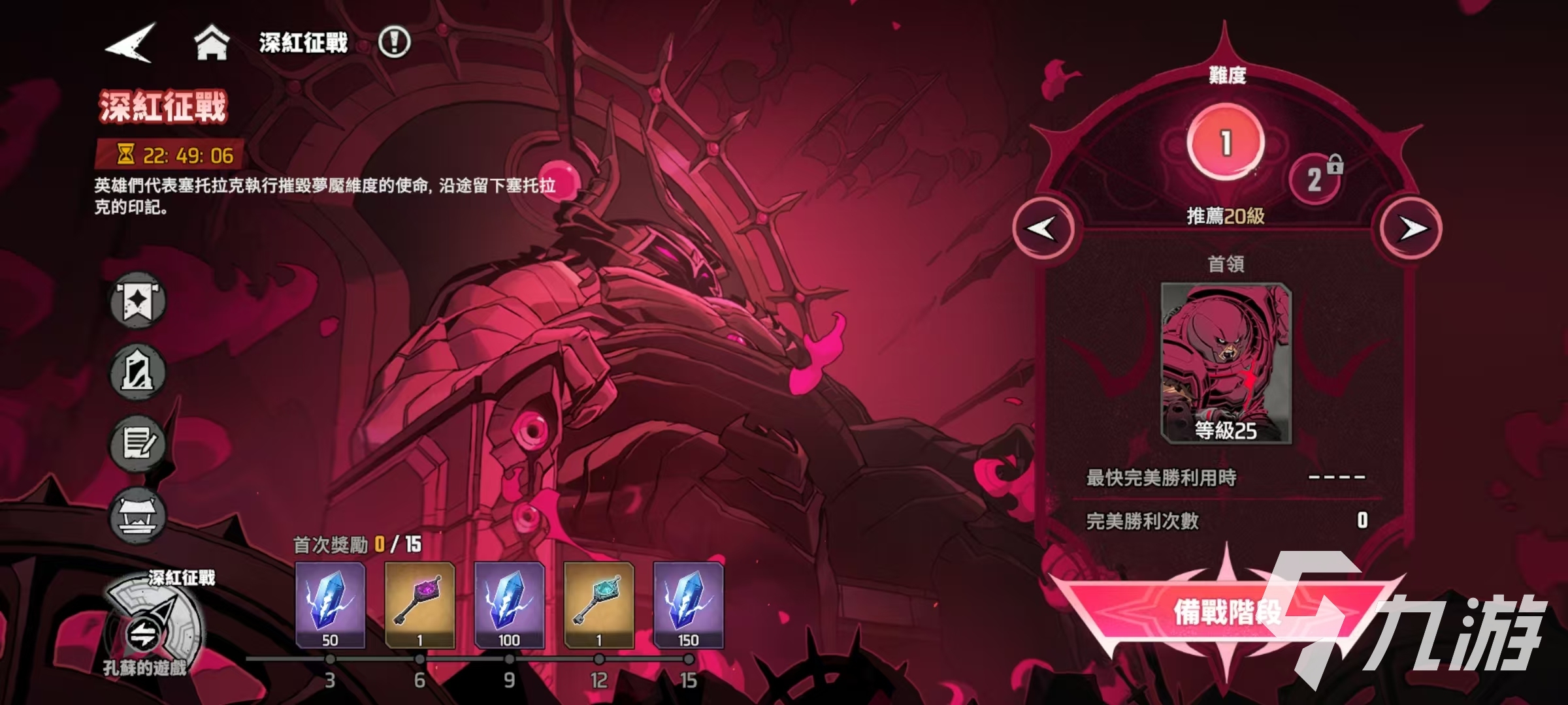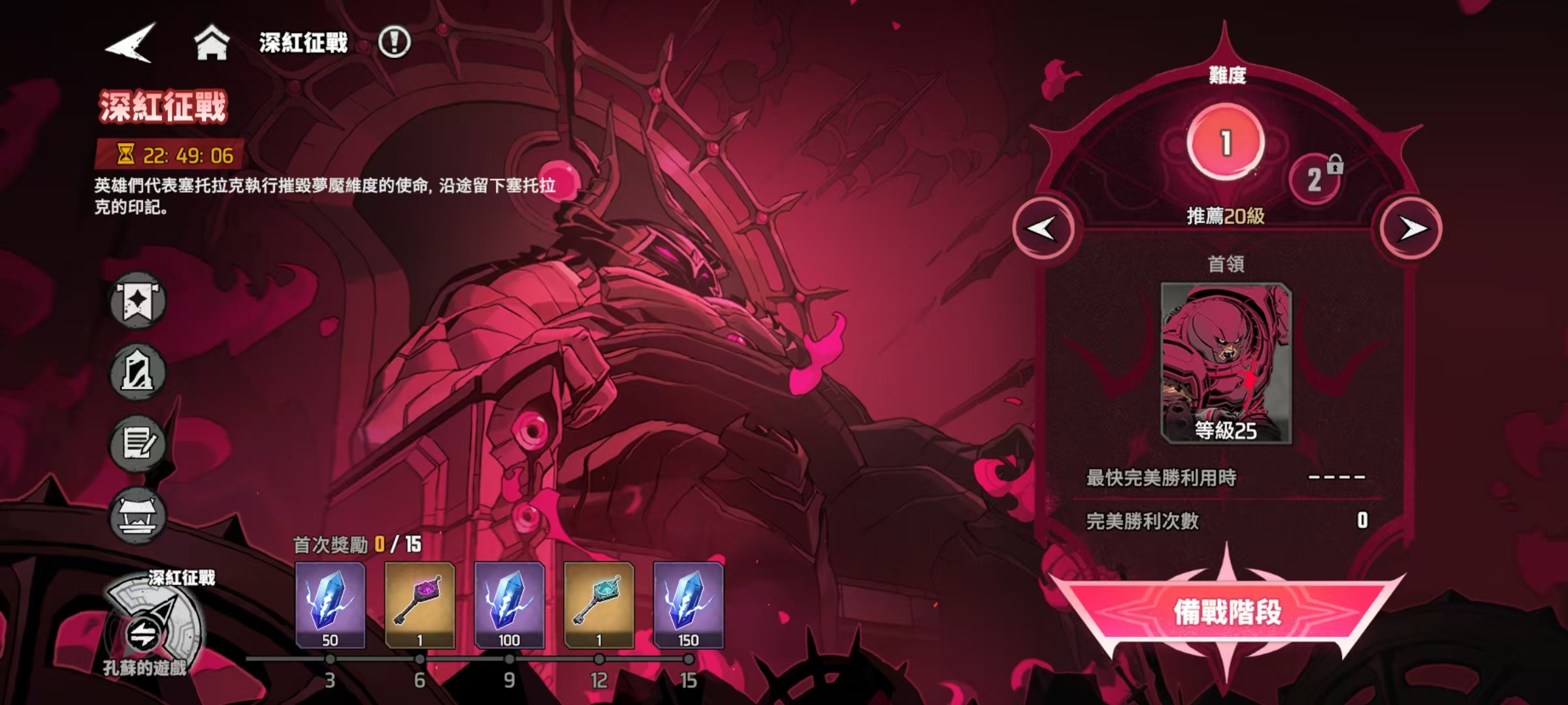 首先来看一下这项活动的机制,玩家打开梦境维度之后,就可以看到深红征战的活动入口。在这里需要组建一支队伍进行战斗,获得全部战斗胜利后就可以通关,任意战斗失败,则本次征战结束,按照之前获胜的次数来获得奖励,所以大家要做的,就是快速稳定的向前推进。在征战过程中,还可以选择赛托拉克的神契来强化队伍,这个神契一共有三个品质,分别是蓝色的稀有,紫色的史诗和金色的传说,随着征战不断进行,获得高品质神契的几率也就会越来越高。