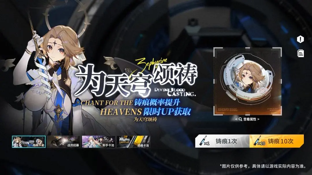 2.「为天穹颂祷」铸痕卡池开启!泽菲琳专属烙痕「高歌维拉提亚」铸痕概率提升。