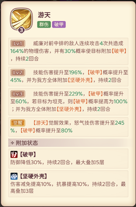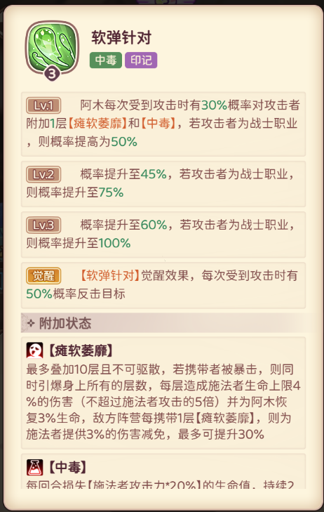通过绿色头的稳定的减益破甲效果能有效的为主C创造收割空间,瘫软萎靡有效降低敌方主流战士主C多回合内血线