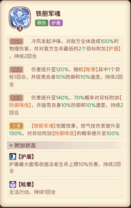 核心超强防御,护盾保护,免伤鼓舞,眩晕,同时能与星空奶冻形成水系技能羁绊额外提高伤害。