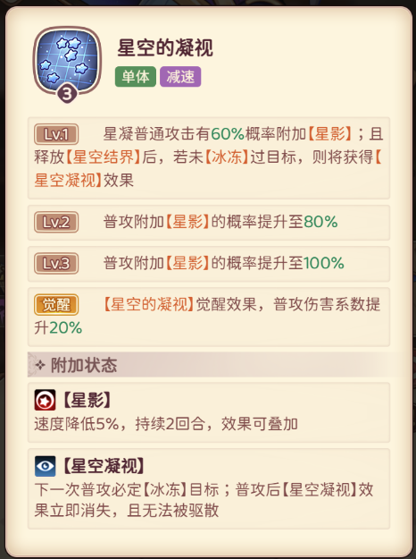 这个阵容又被称为国家队,它在游戏中不管是前期亦或者中后期的效果都比较不错,而且在战斗中,不管是打PVP或者PVE模式都能玩的比较轻松。星空奶冻在这个游戏中的功能性非常的强,特别是在打PVP模式的时候,能直接对敌人群体造成冰冻效果,并且还能对被冰冻过的敌人增加普工百分比伤害系数。