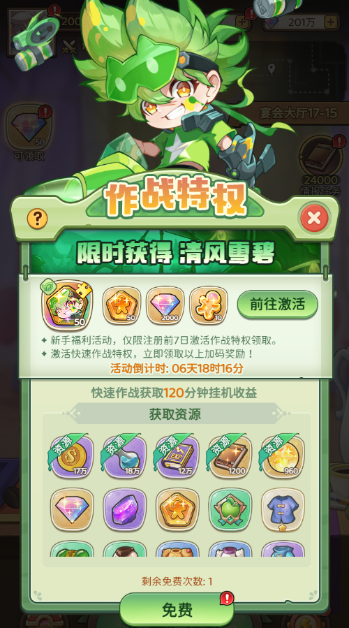 - 效率倍增:每日获得额外的快速作战次数,显著提升主角等级、资源获取速度和挂机收益,是追赶进度、缩短养成周期的核心利器。