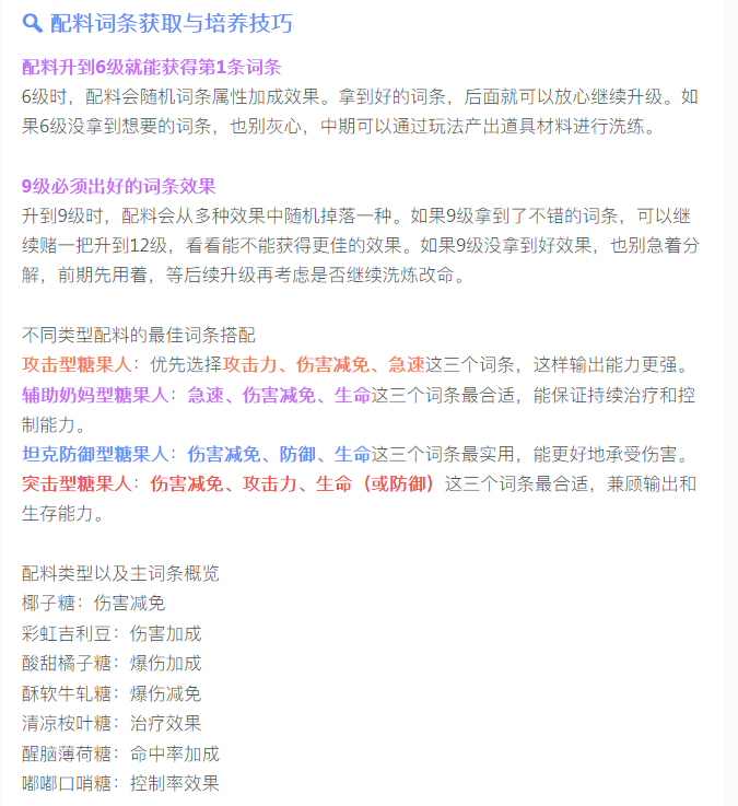 配料系统是提升角色战力的核心玩法之一!一个极品词条,往往能让你的糖果人输出翻倍、生存拉满,甚至逆风翻盘!