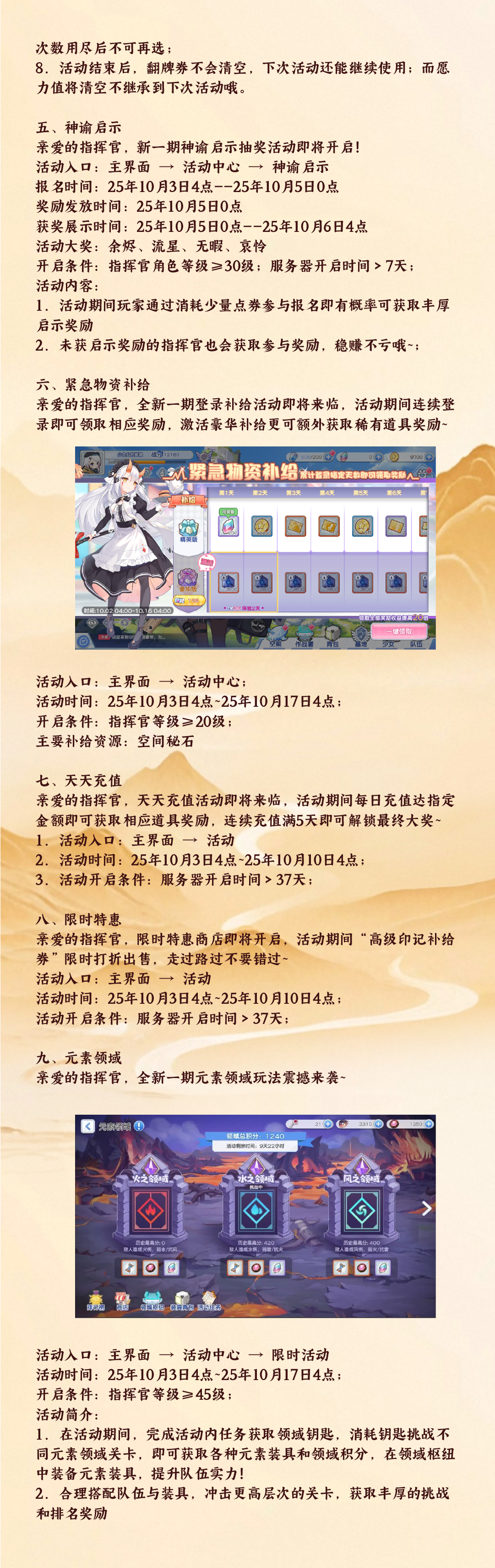 入坑146天,全勤:从萌新,到卷王,到老登,再 到长革,不同时期有不同的游玩体验,唯一不变 的是对小分队的热爱和支持。与其用小众来形 容她,我更喜欢用宝藏这个词,不管是游戏本身 还是社区氯围,都是我坚持下去的动力。具体的 游戏内容我不多说,感兴趣的小伙伴可以自己 尝试,我想说的是谢谢小分队,陪伴我也让我 结识了一个个志同道合的朋友,希望小分队越 来越好,我不想失去。 ❗二编❗ 我又来咯,小分队推出国庆版本啦!超级开心和非遗的联动!小分队国庆快乐啊~顺便,累签188天打卡[微笑]。战力也是来到了8.6e,微氪党哈,大家可以参考一下。也算是长草期了,但是每天还是能点一两个免费十连的,平时慢慢把少女超凡,慢慢屯材料(本人确实屯屯鼠)。不过终于等到新版本啦,好多内容啊,最近都在消化!有点眼花缭乱,但是也说明小分队是有用心在创新啊,最近各种节奏挺多的,理性吃瓜,相信大部分人还是希望小分队越来越好的,依旧是热爱与支持! 【建议】最后是新版本游玩几天下来的感受和建议:整体来说,东西确实很多,也有很多新东西,但是太会“藏”了,前几天抽的烛龙印记,今天发现可以免费领一个,这个印记只能新角色一个人带,所以一个就够,两个就溢出了QAQ,还有就是活动分段开启这个设定,也是老生常谈了,但是确实容易忘记日期。比较有意思的是这次的多人在线“爬塔”活动,确实很有创意,也活跃了玩家之间的关系,这点很支持。但是我觉得有些地方还是需要优化一下比如既然设计成多人在线对战,那房间内是不是可以加上对话功能呢?队内在线聊天还是有必要的吧,沟通啊!这点我觉得很有必要优化,毕竟我不是找熟人组队,都是路人互帮互助,不能沟通很难受。