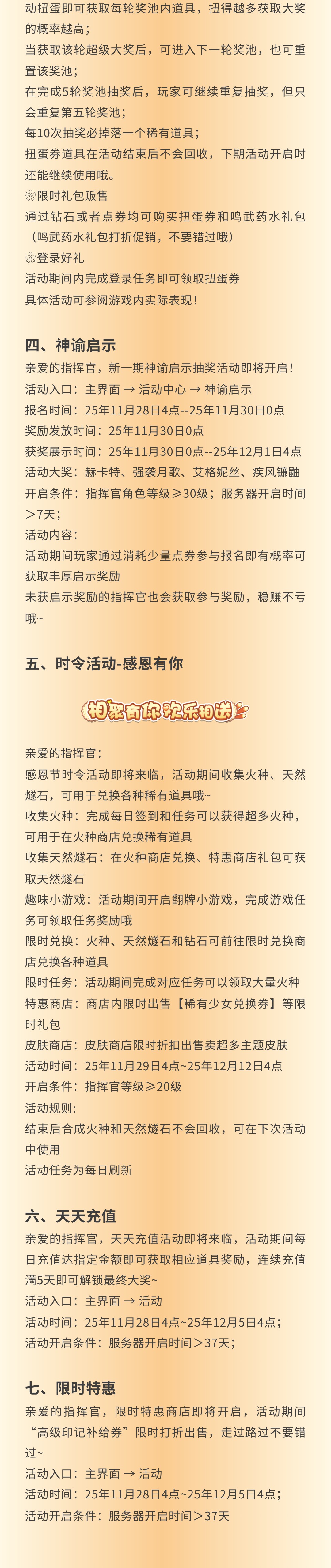 大型活动周期延长我觉得这个挺不错的 有新的玩法活动 不然长草期跟上班一样挺无聊的,烛龙双形态的设定很新颖。非遗联动不用花钱我是没想到的,皮肤模型原画都挺好的,希望技能特效上面能有更好的进步。也祝小分队越来越好!